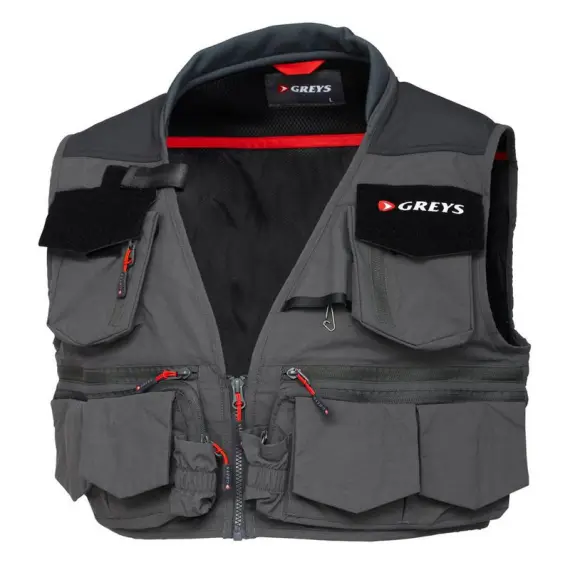 Greys Tail Fly Vest er en lett og pustende flyvest designet for fluefiskere. Med to brystlommer, innebygd retraktor for verktøy, flere små lommer for fluesnøre, bokser og fluebehandling, samt to store baklommer og D-ring for not, tilbyr den smart oppbevaring. Skumfylt nakke gir komfort hele dagen, og meshforing sikrer god ventilasjon under varme fiskedager i elv eller innsjø.[7]